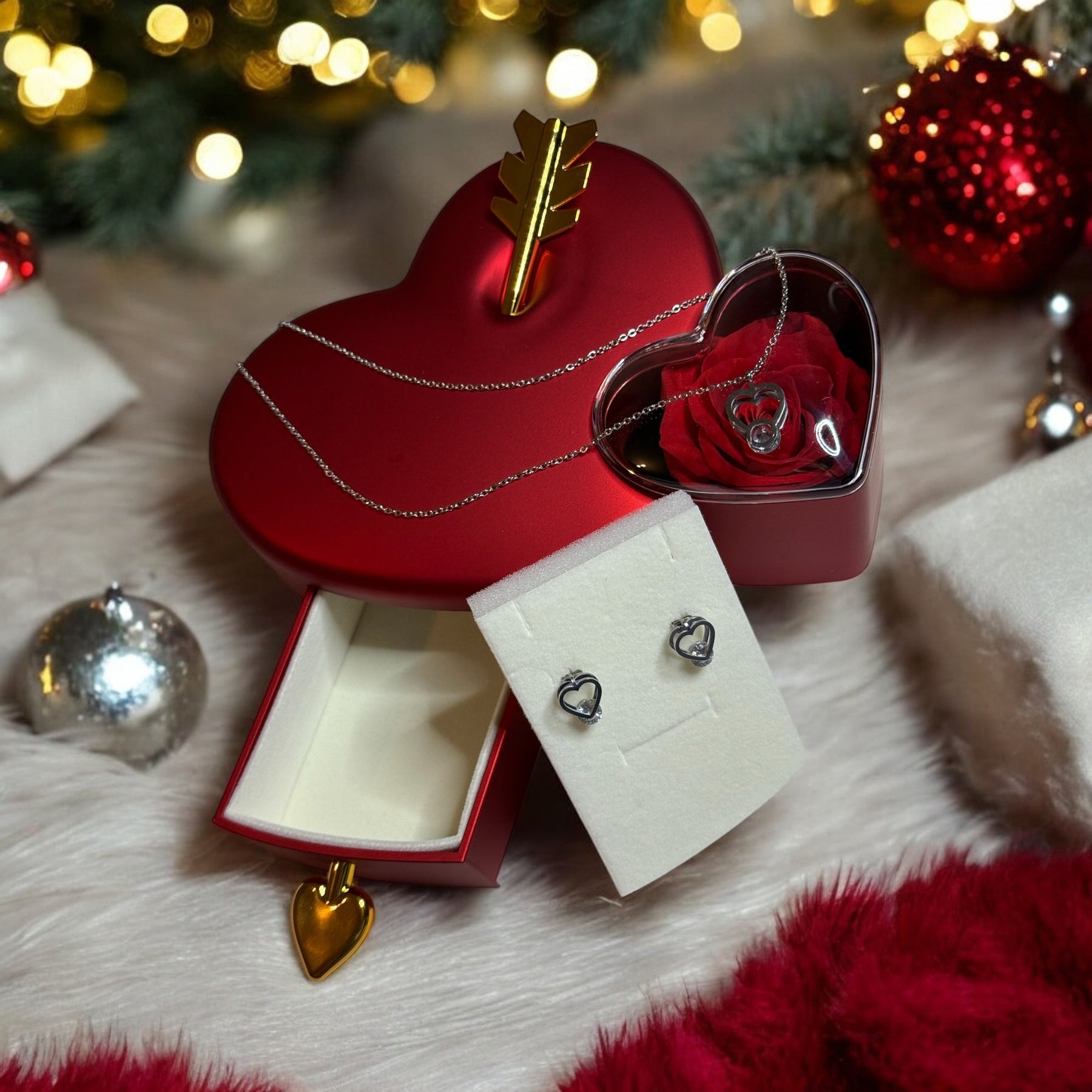 Boîte-cadeau incluse : Livré dans un écrin en forme de cœur, accompagné d’une rose éternelle pour un effet romantique garanti.