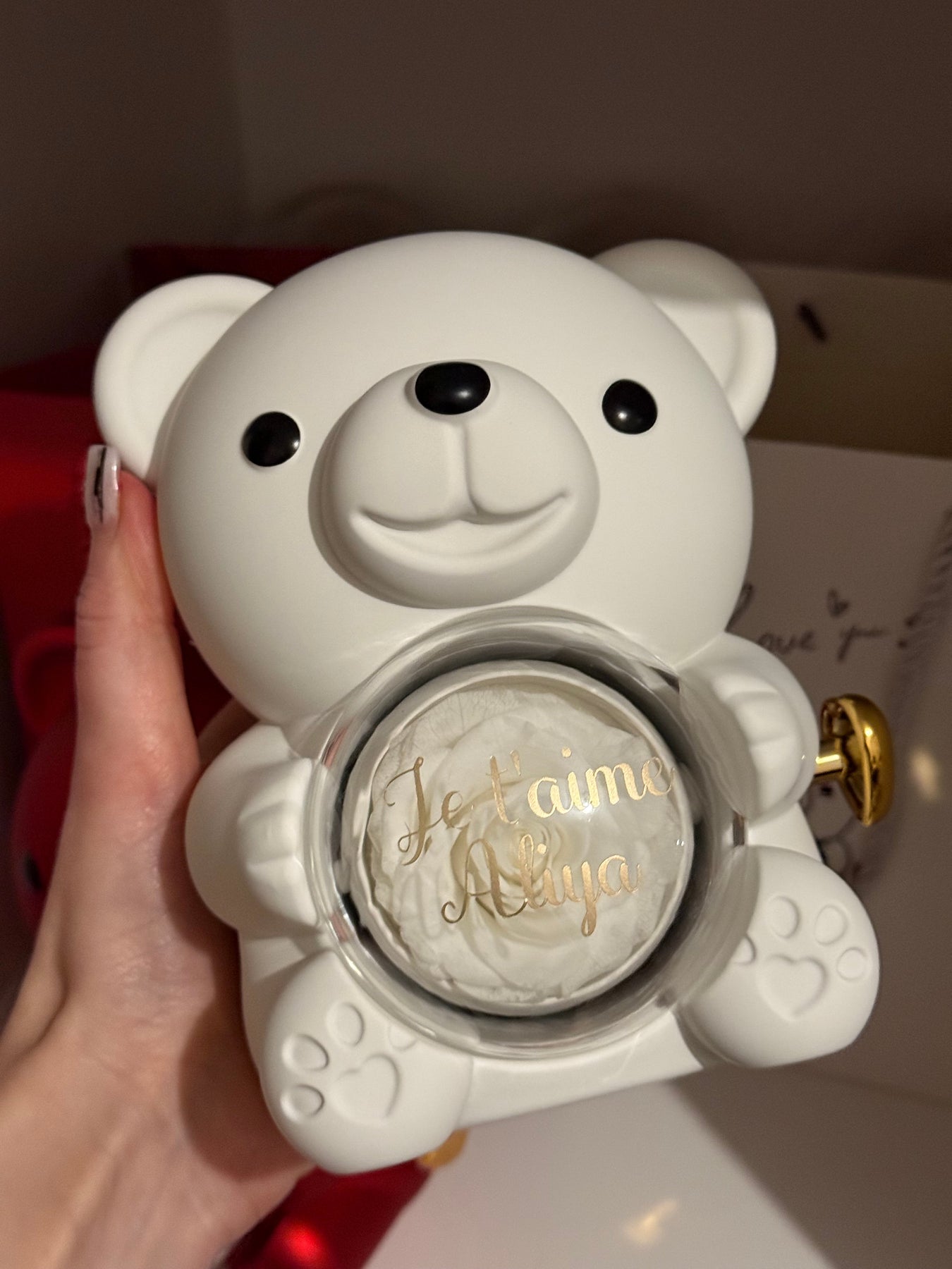 Ours avec de rose Le bouton rotatif d'amour à 360° vous offre une surprise double face,ours en forme de rose et le bouton texturé en métal ajoute une touche ludique à l'expérience de déballage et assure une surprise inoubliable et agréable pour vos proches.