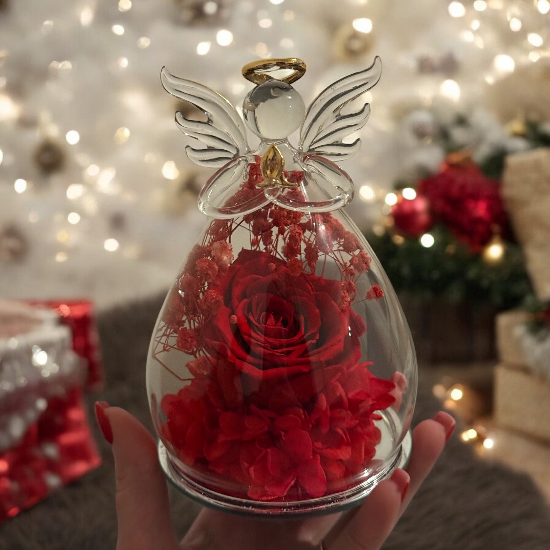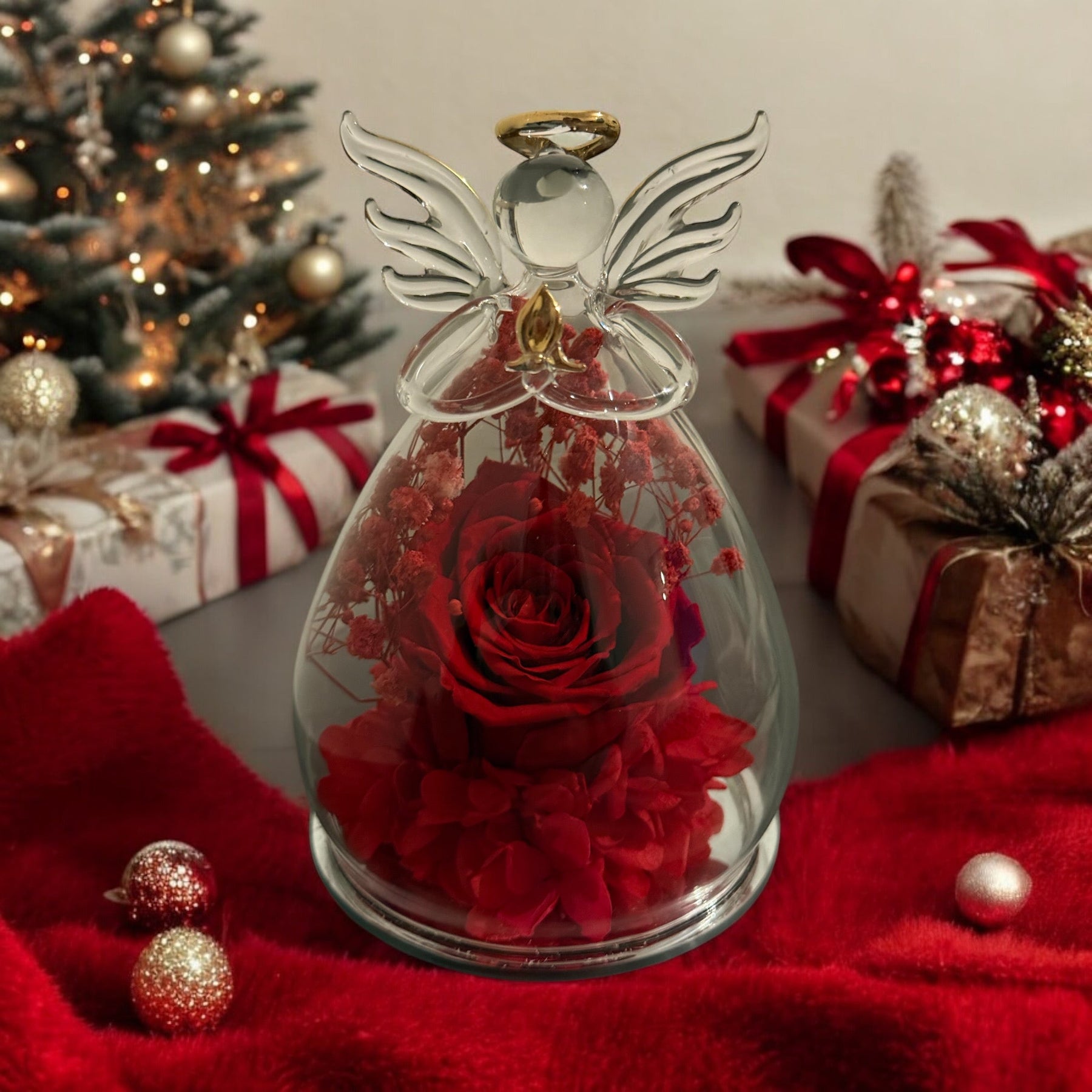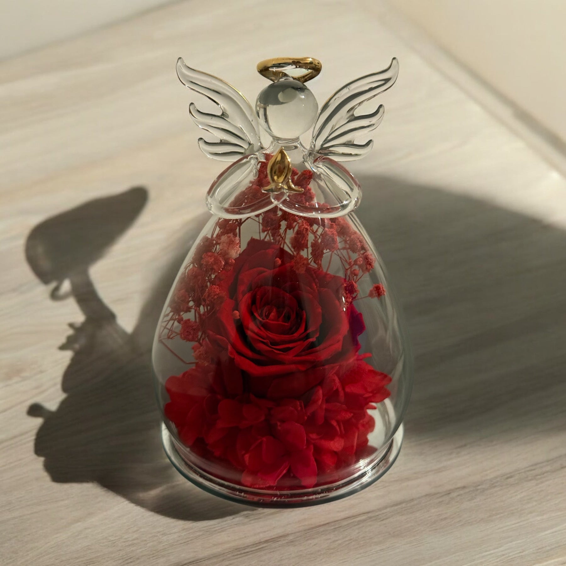 Ange en Verre avec Rose Éternelle Rouge