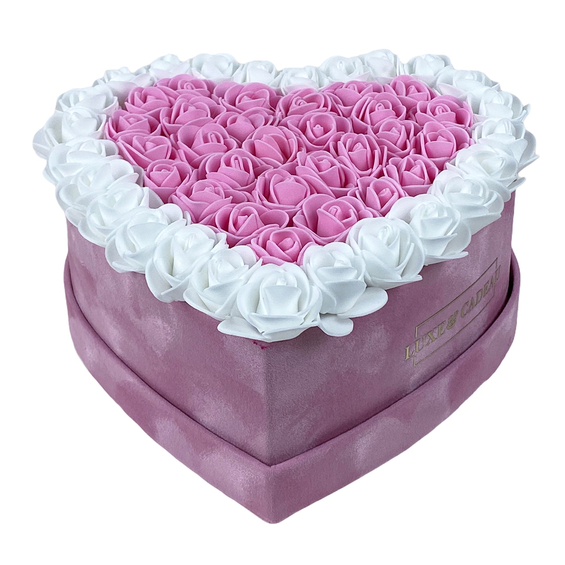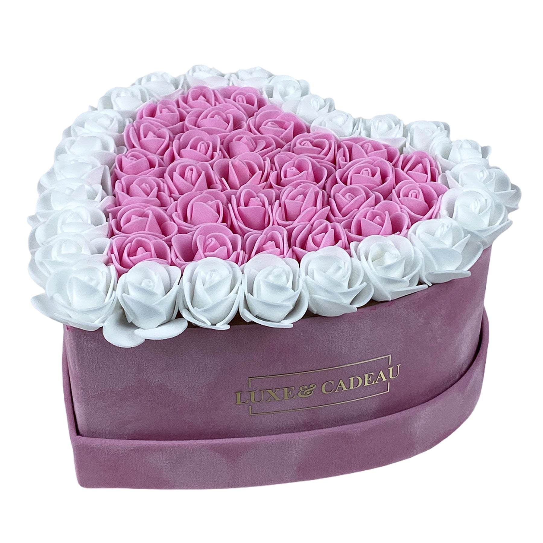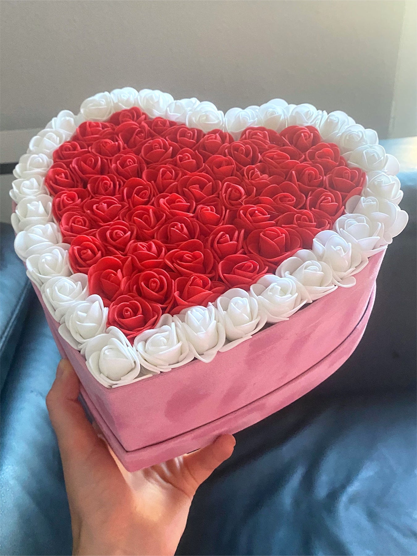 Fabriqué à la main avec plus de 50 roses, et en daim synthétique, très doux au toucher.