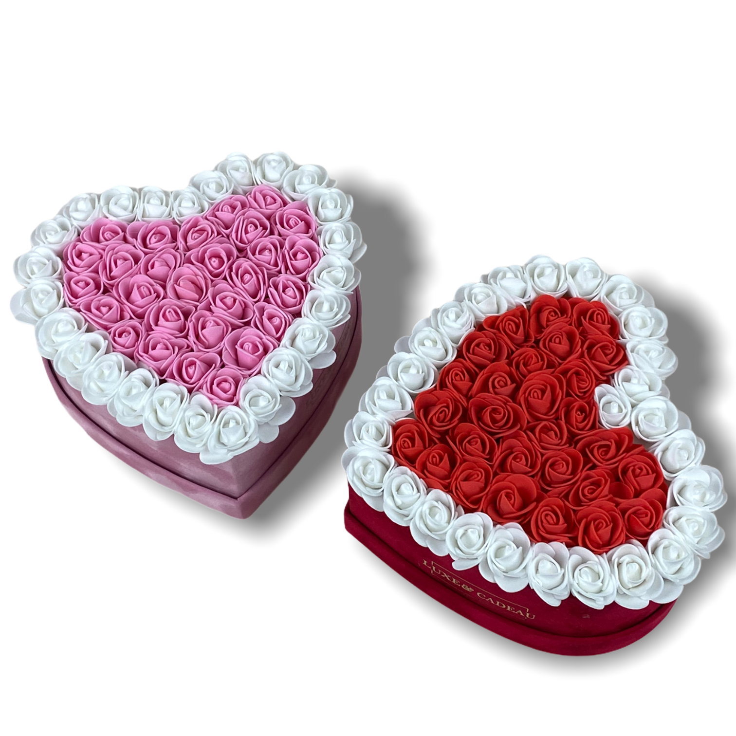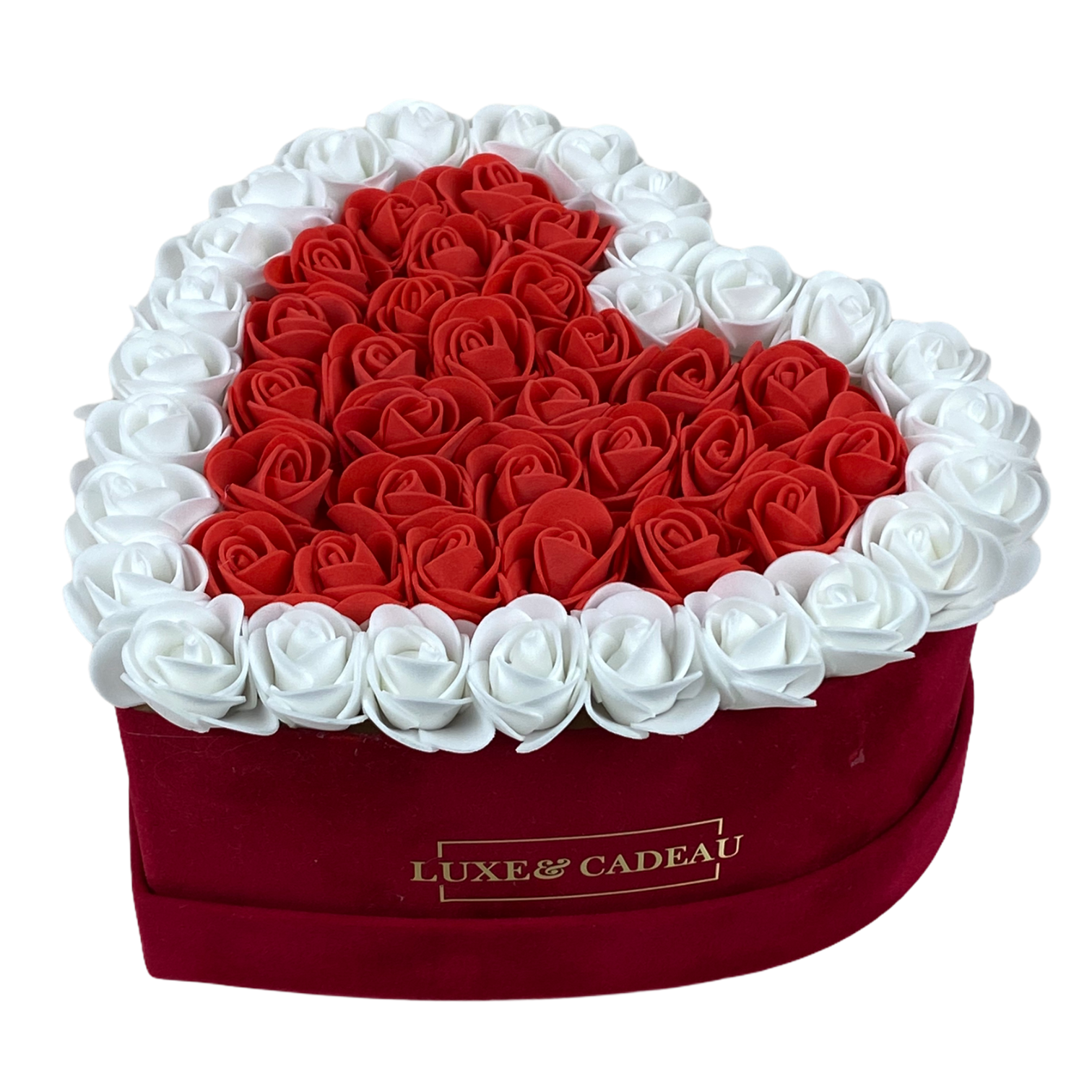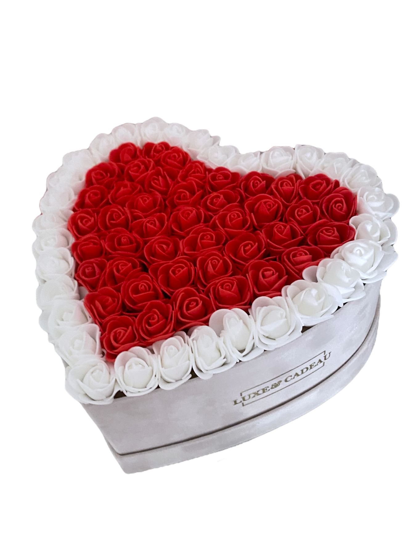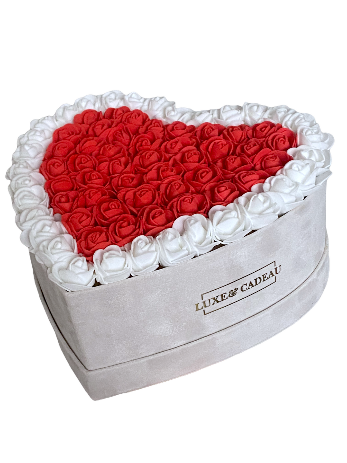 Fabriqué à la main avec plus de 50 roses, et en daim synthétique, très doux au toucher.