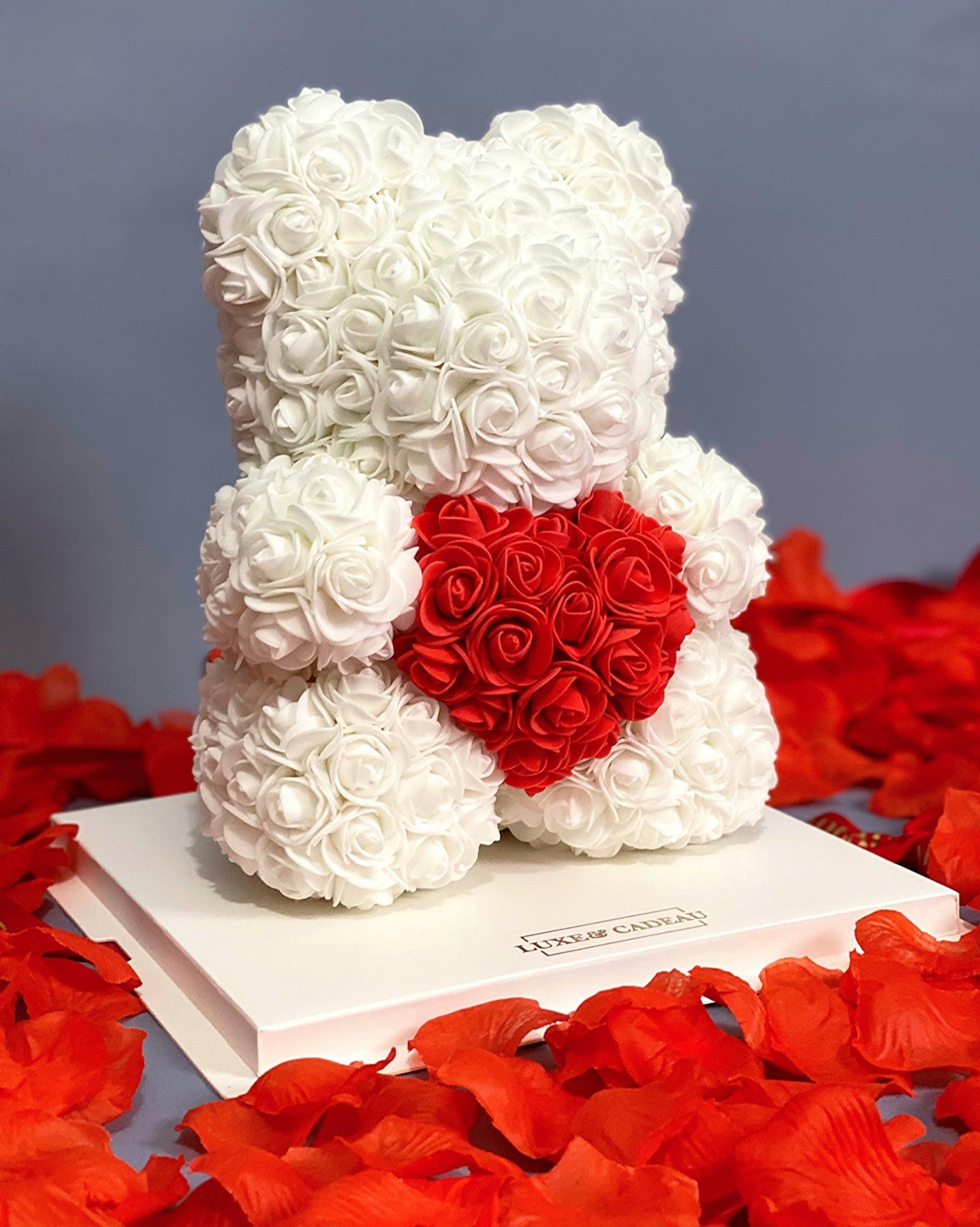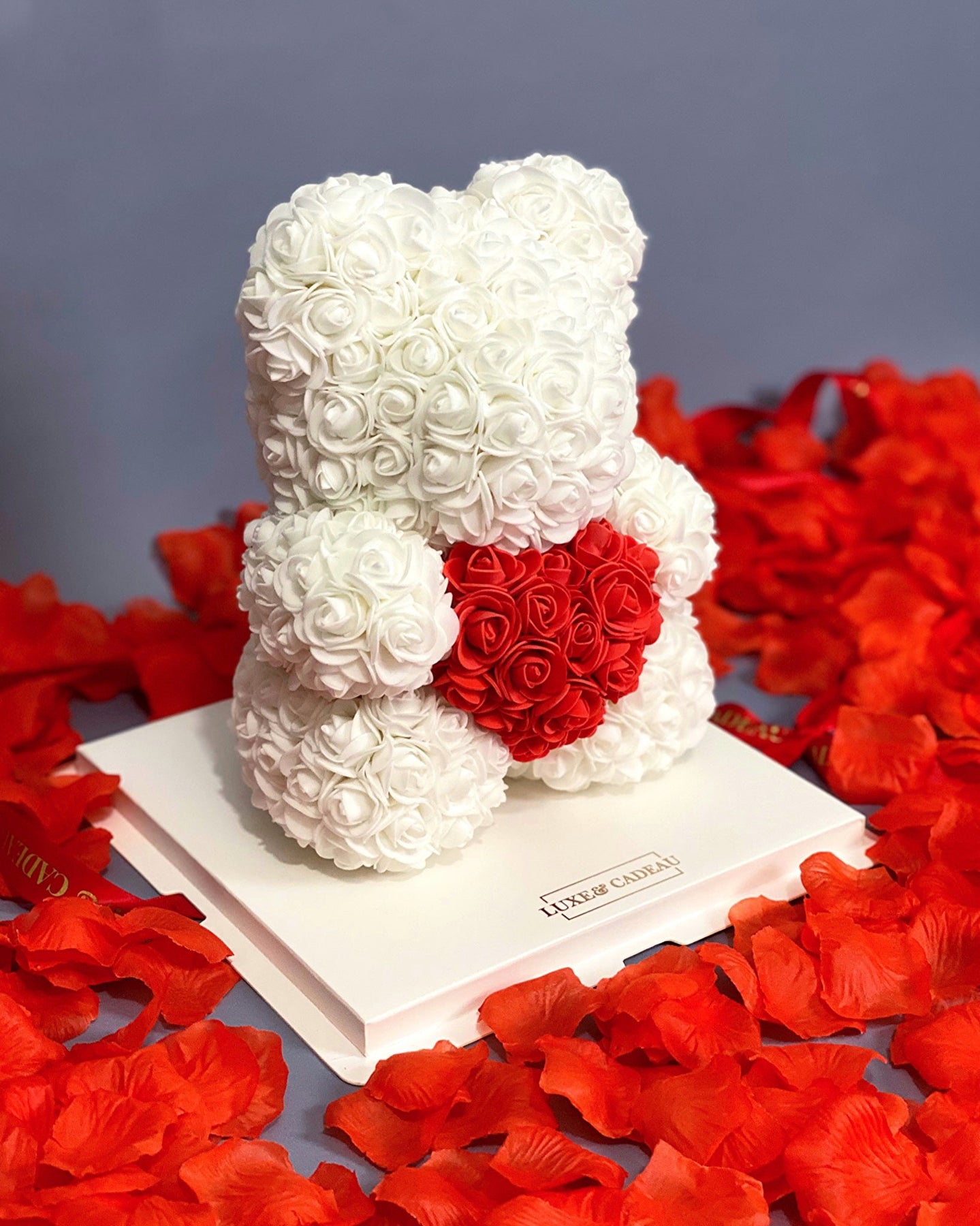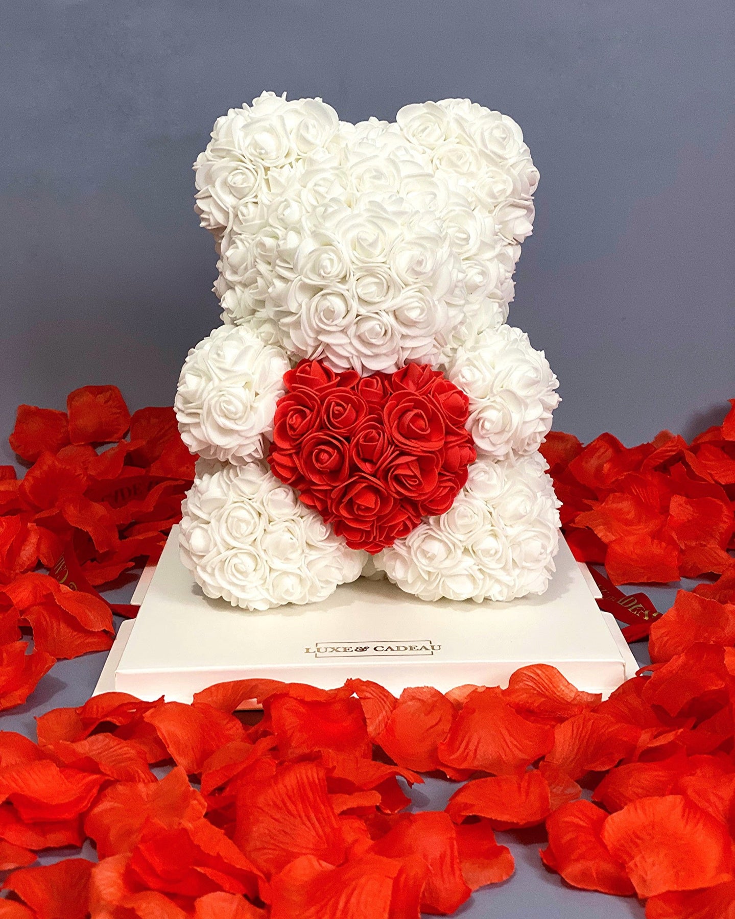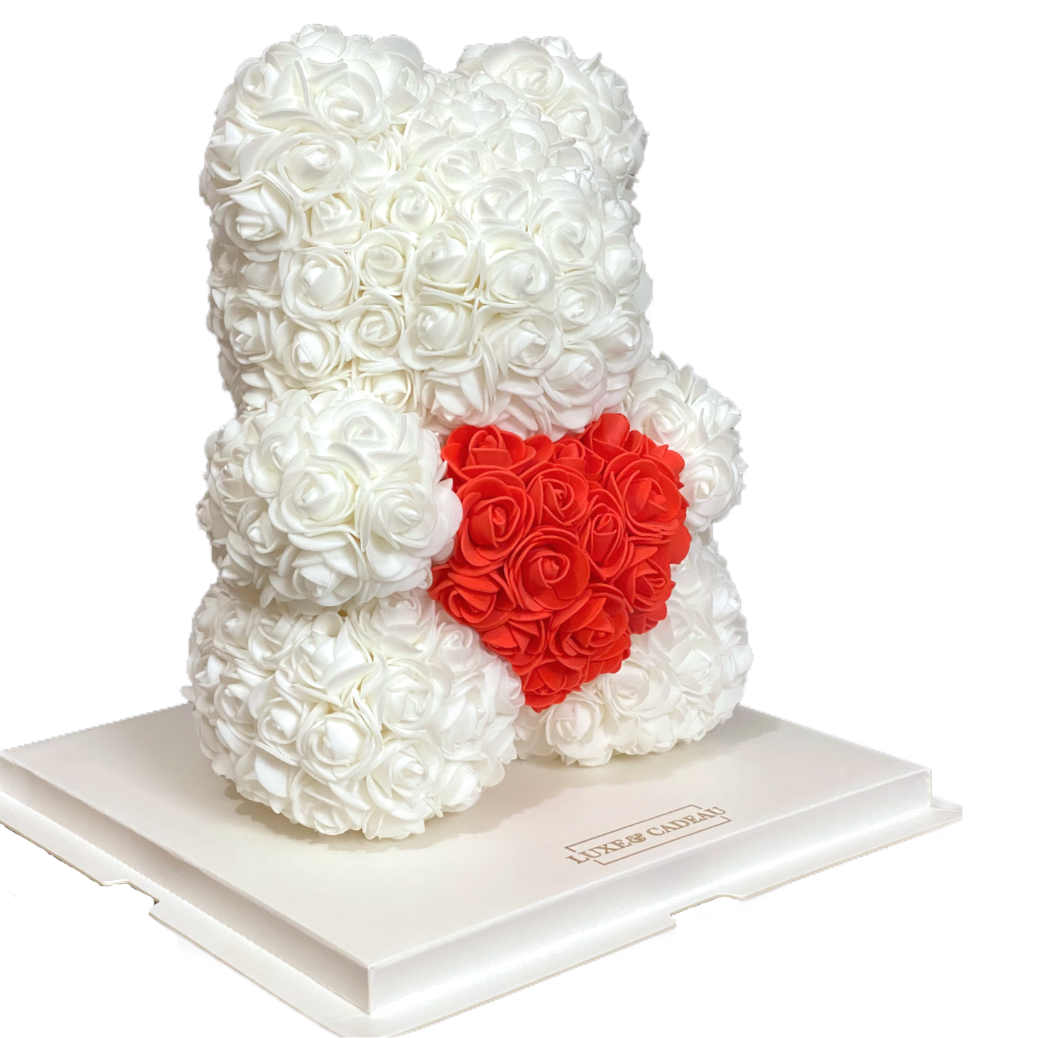 Fabriqué à la main avec plus de 400 roses, et en daim synthétique, très doux au toucher.
