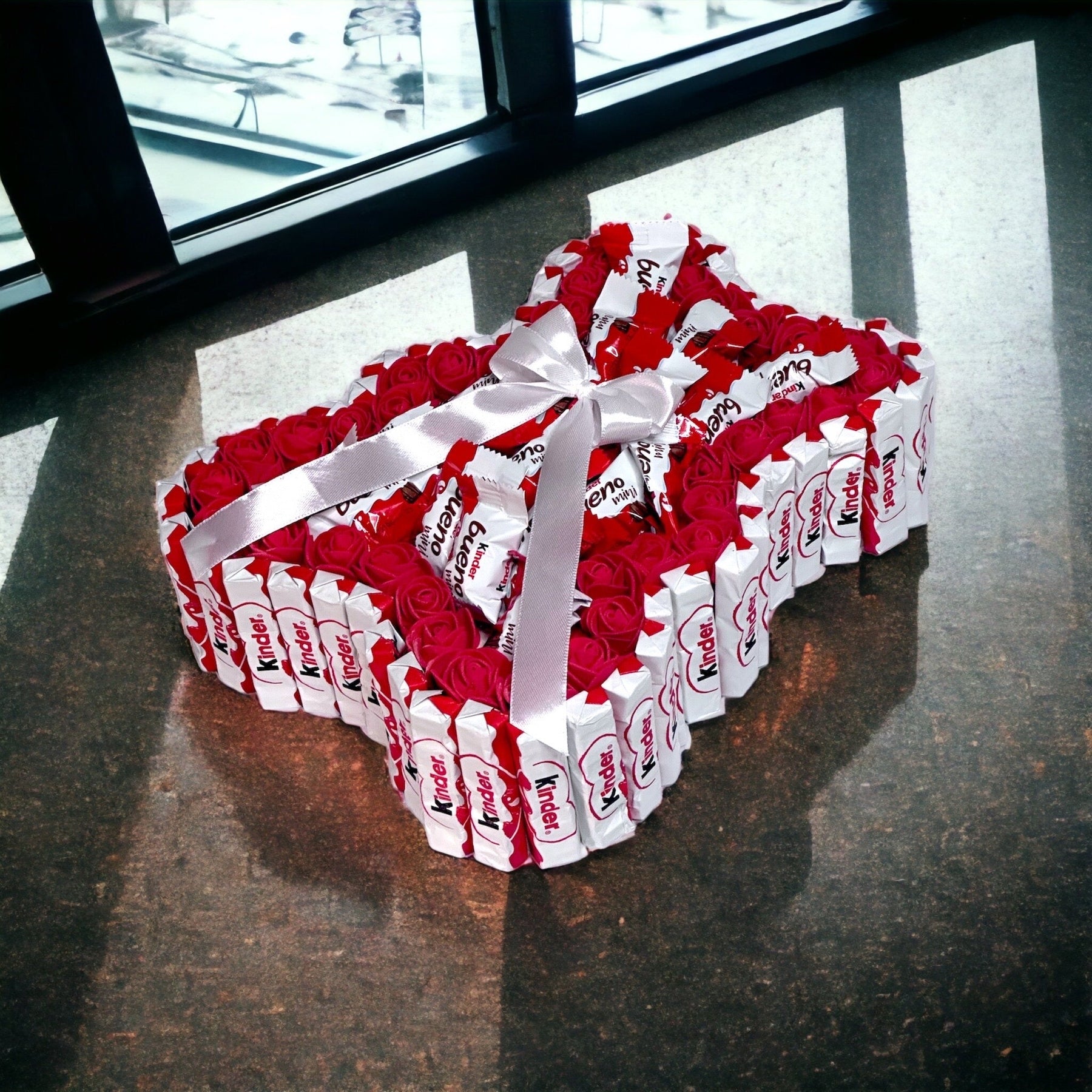 Cette boîte de chocolat contient un bouquet de chocolats, Raffaello et Kinders pour combler les gourmands. La combinaison des saveurs uniques et des textures douces et croquantes des chocolats Ferrero Rocher, Raffaello et Kinders est appréciée par tous.