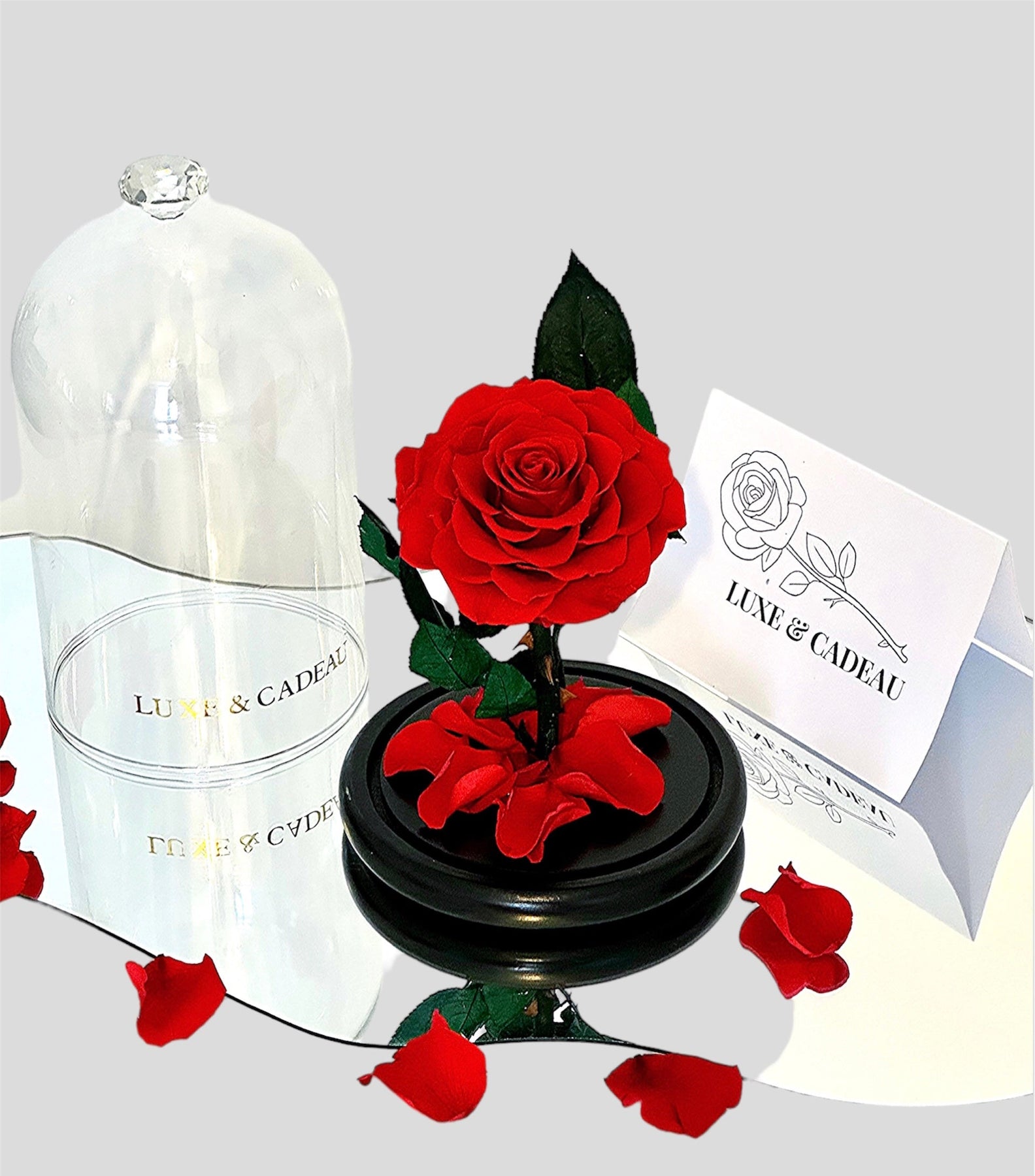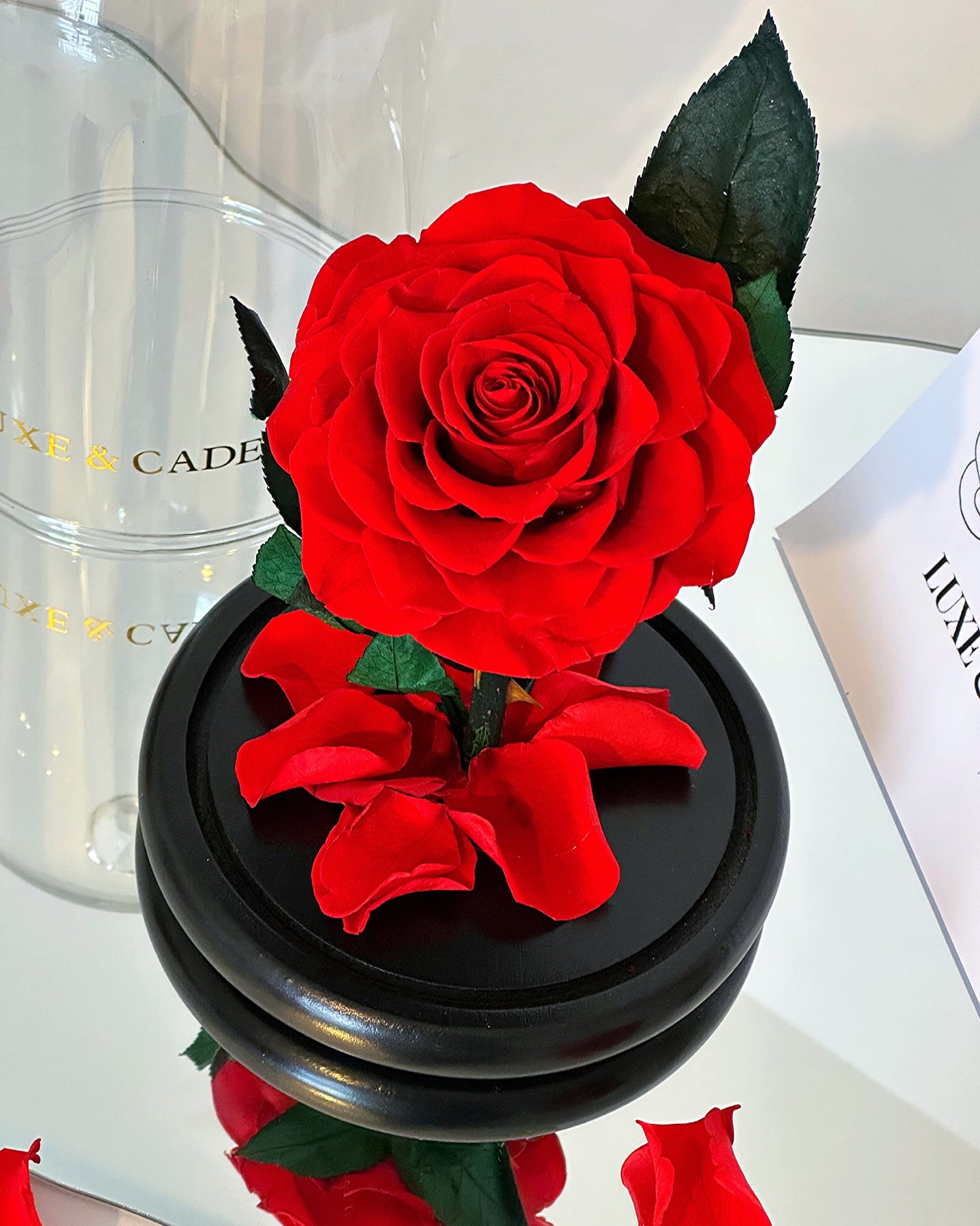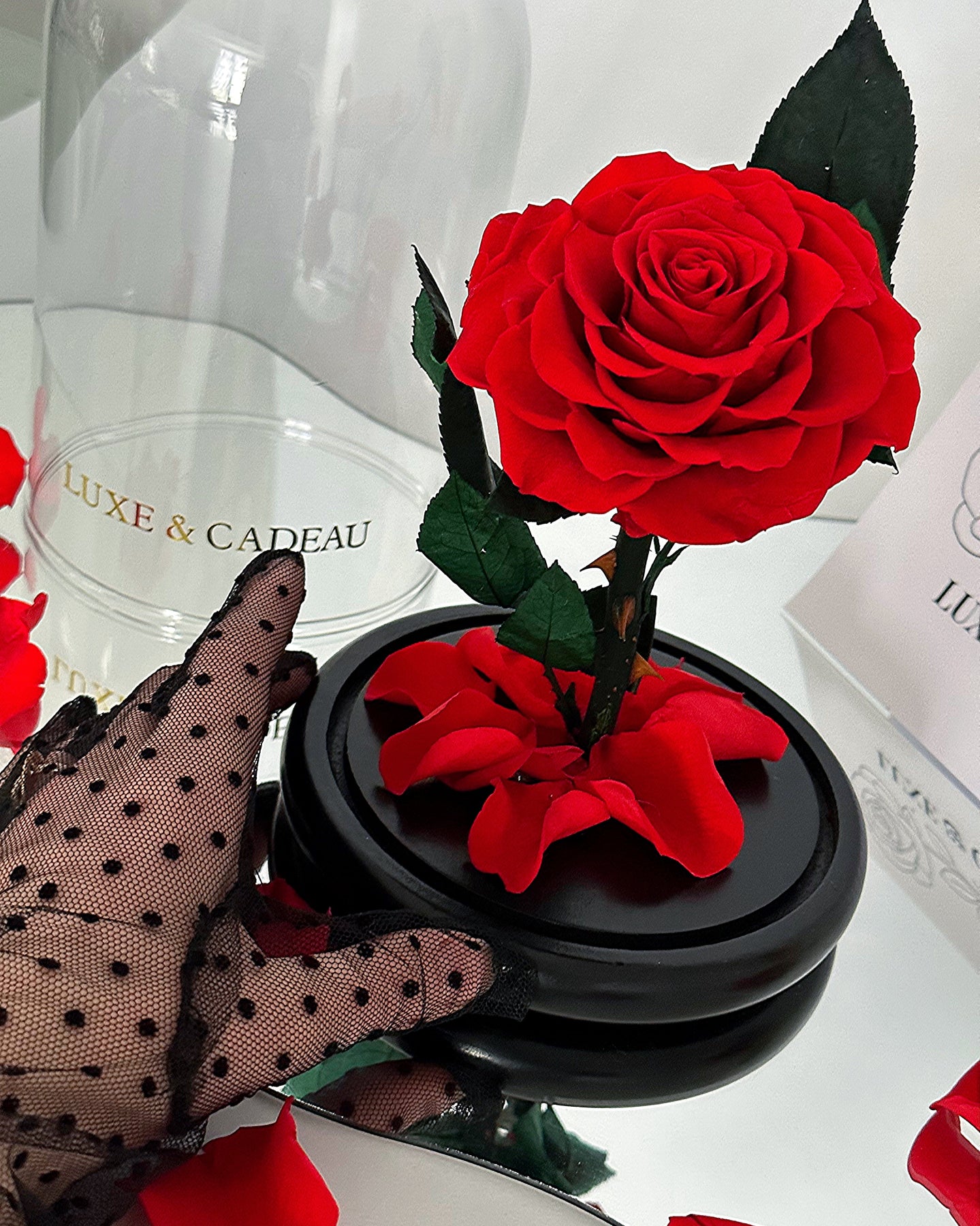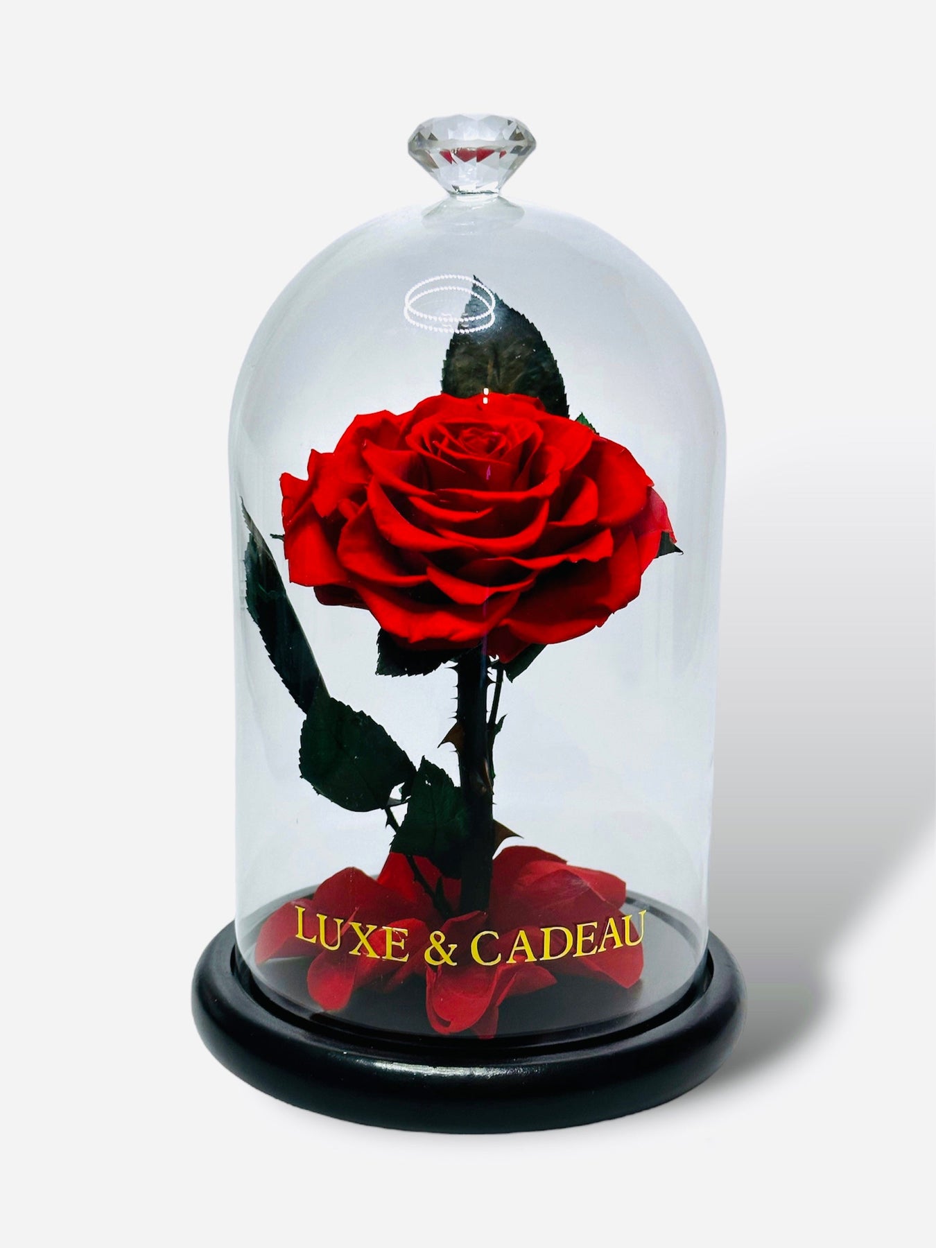 Découvrez la rose éternelle sous cloche de 22 cm, qui ravira vos yeux et votre cœur pendant ces 5 années. Une idée cadeau unique, qui reflète l'amour éternel. La cloche en verre protège la rose et conserve sa beauté à la perfection.