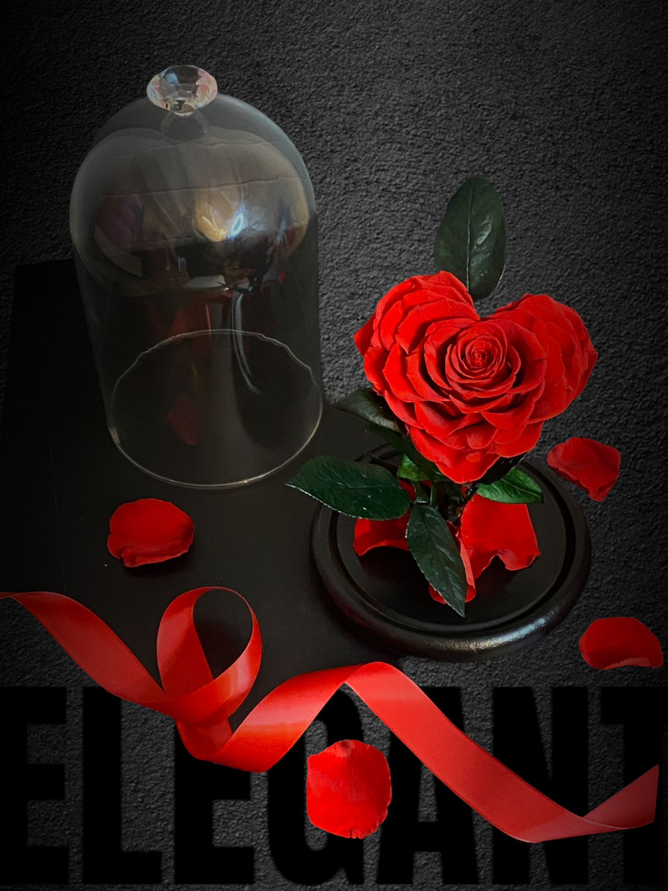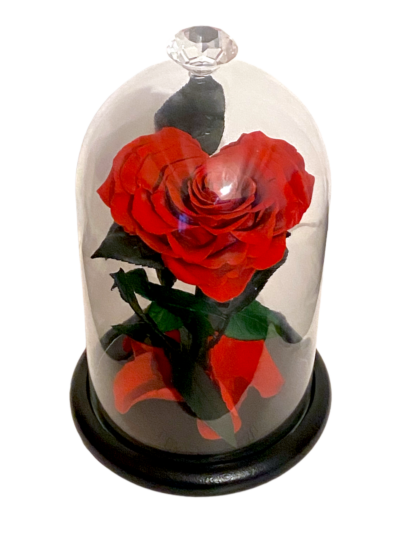 Rose éternelle sous cloche en forme de cœur
