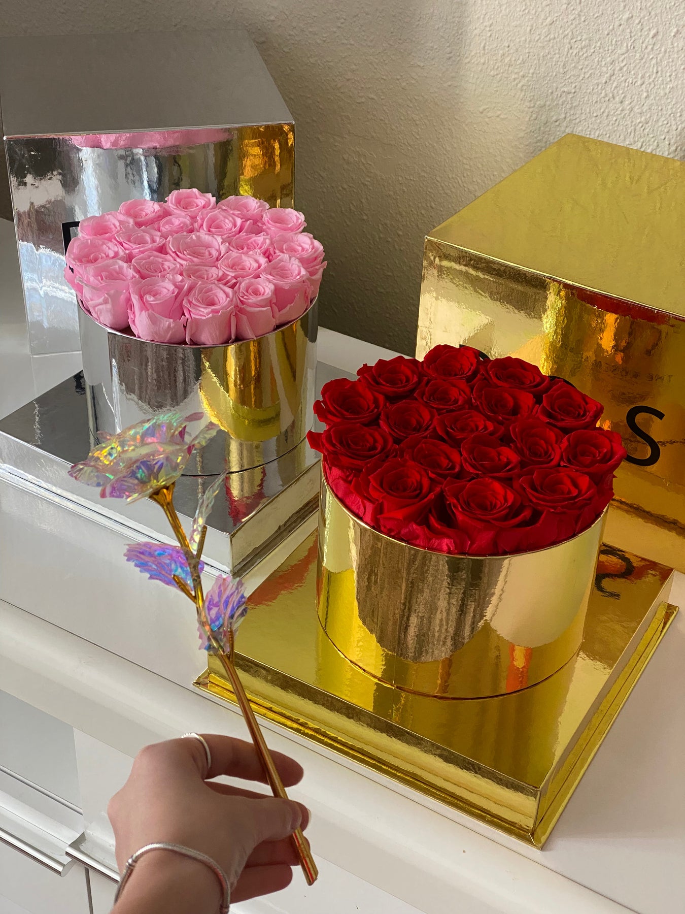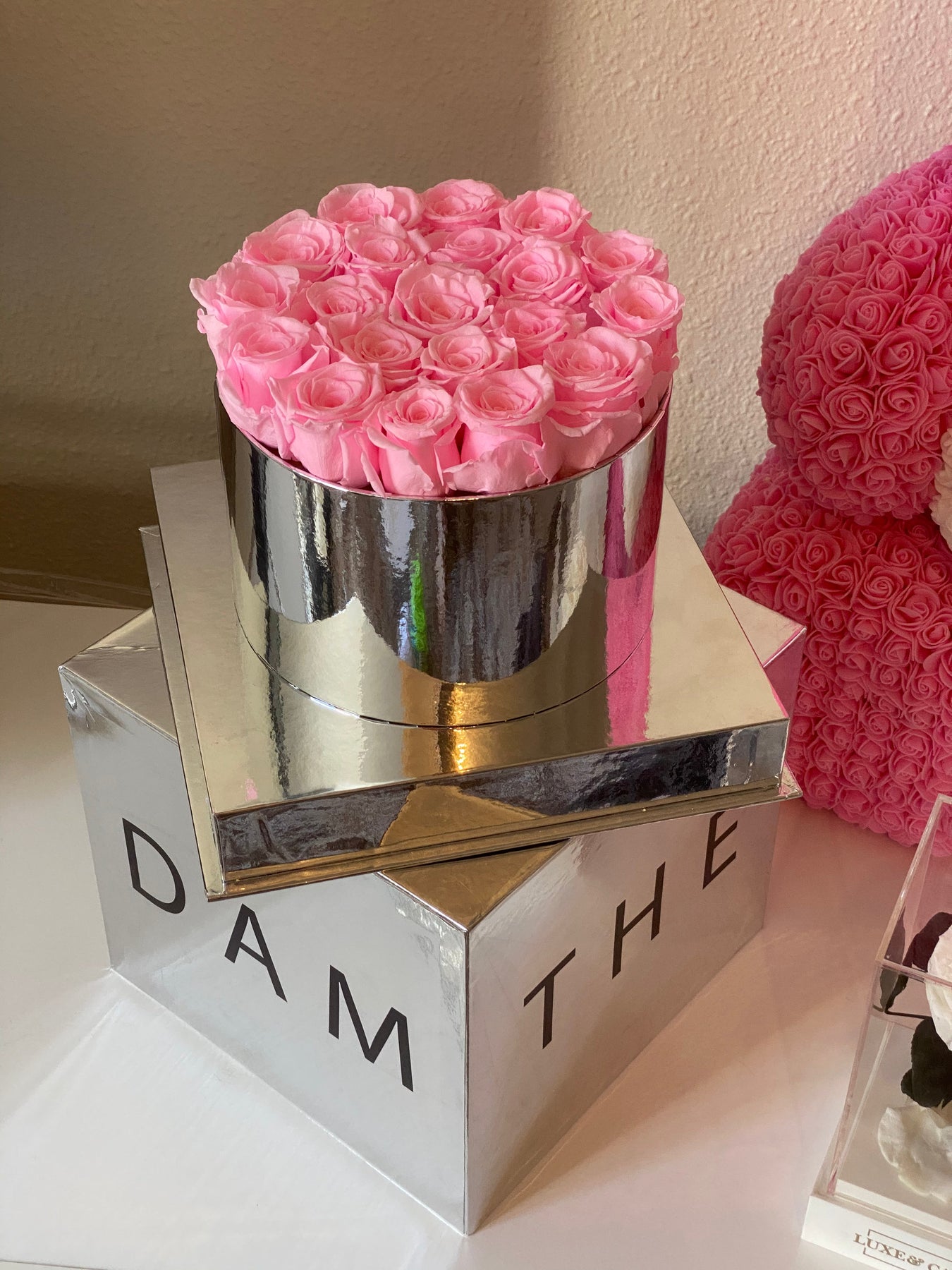 • La composition est faite avec de vraies roses vivantes stabilisées.